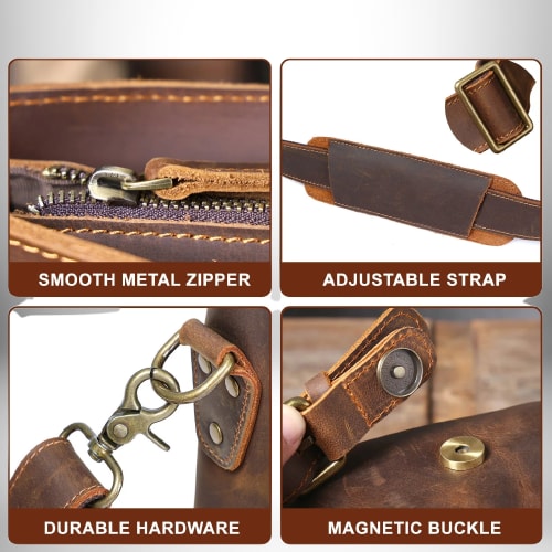 - Matériau principal : Cuir véritable de vache, robuste et durable