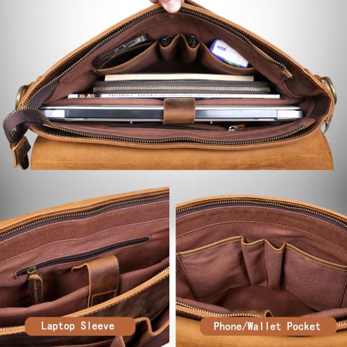 Cartable Prof en Cuir Véritable - Mallette Enseignant avec Compartiment Ordinateur