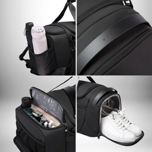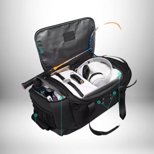 - Dimensions généreuses (53 × 25 × 22 cm) : Suffisamment spacieux pour transporter vos chaussures, vêtements, serviette et accessoires sans sacrifier la mobilité.