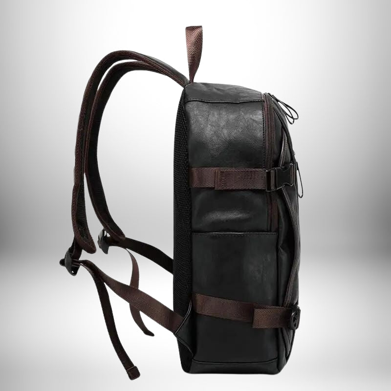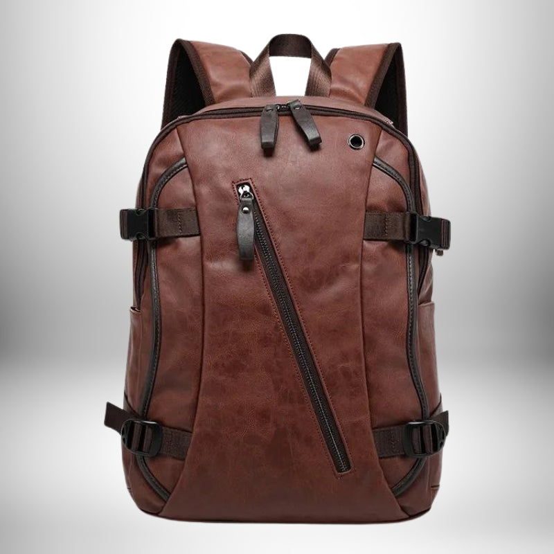 - Un sac à dos en cuir PU texturé au style motard authentique